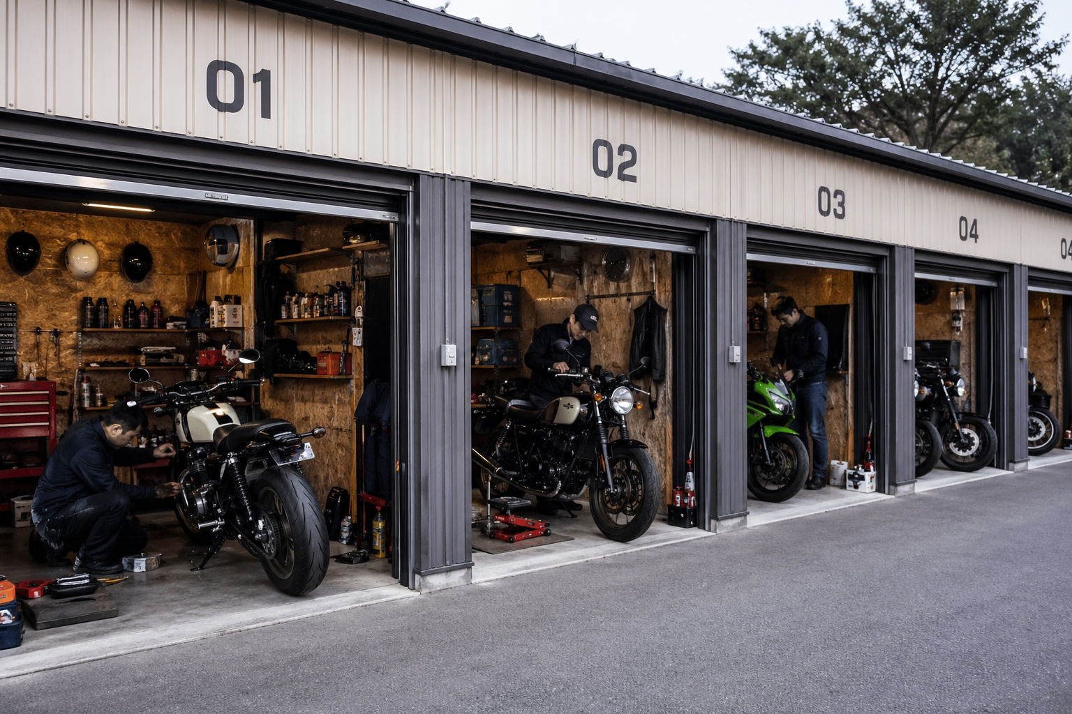 全8区画のバイクガレージです